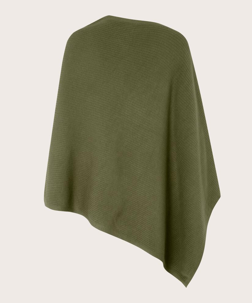 Soft, cosy and stylish - this knitted poncho has it all. It's knitted in a lightweight, soft fabric with plenty of stretch and a loose, relaxed cut that's great to wear. The poncho has a feminine neckline and falls loosely and comfortably over the body in a beautiful asymmetric cut. Wear it over a patterned dress, trousers or jeans and keep warm in style.